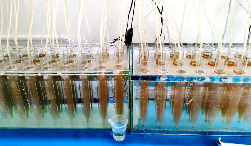 改进方法:丰年虾卵在消毒、充分浸泡后装入筛绢制成的袋中,放入25℃的卵化室,避免强光照射,保证供氧充足,8-9小时后变成灯笼幼体(卵与幼体没有分开,呈灯笼状),再放入28-29℃的海水中,变成无节幼体。